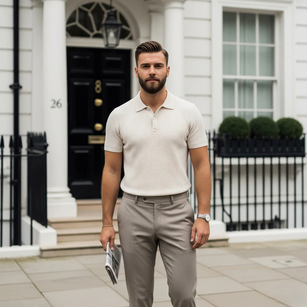 BerlinGlamour | Langarm-Poloshirt für Herren – Baumwollmischung, lässige Slim Fit
